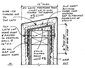A new guide available for flashing and waterproofing stucco buildings, this practical reference focuses on different styles of top of wall caps on frame buildings; intended for designers and builders. It includes other guidance for general stucco work.
